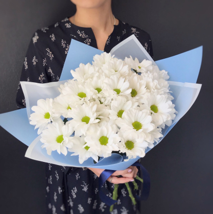 Нежный, небольшой букетик из белой хризантемы Баккарди.